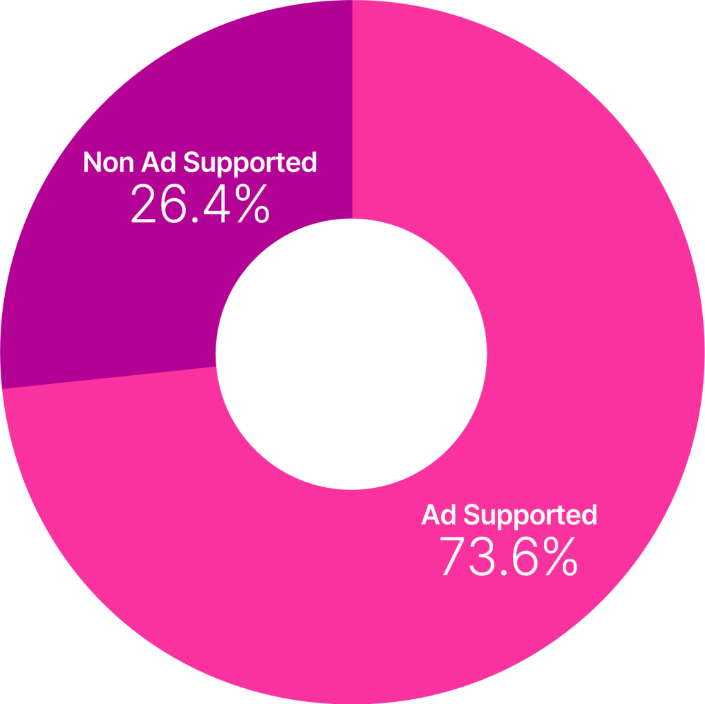 Linear streaming (as defined by the aggregation of viewing to vMVPD/MVPD apps) is excluded from the streaming category as the broadcast and cable content viewed through these apps credits to its respective category. This methodological change was implemented with the February 2023 interval.