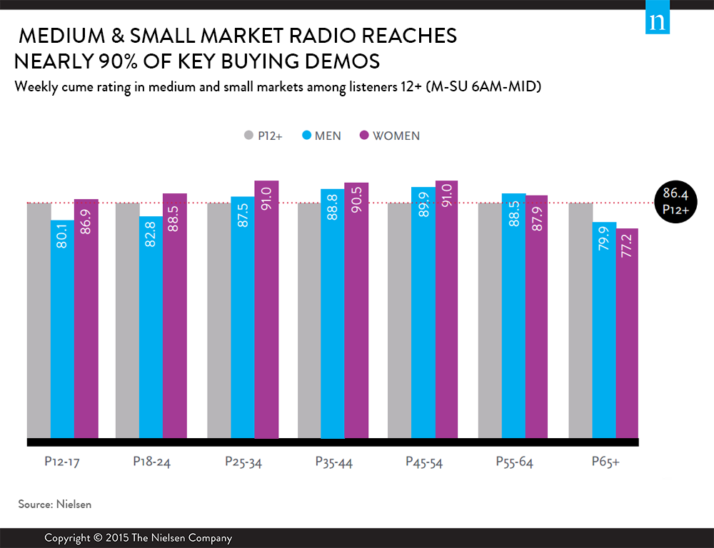 It’s no secret, radio’s reach is unprecedented. According to the recent Q2 2015 Audio Today Report, 245 million Americans aged 12 years old and older tuned to radio during an average week across more than 250 markets. However, while the bigger markets often grab the headlines, small and medium markets are still viable and vibrant ways to reach consumers.